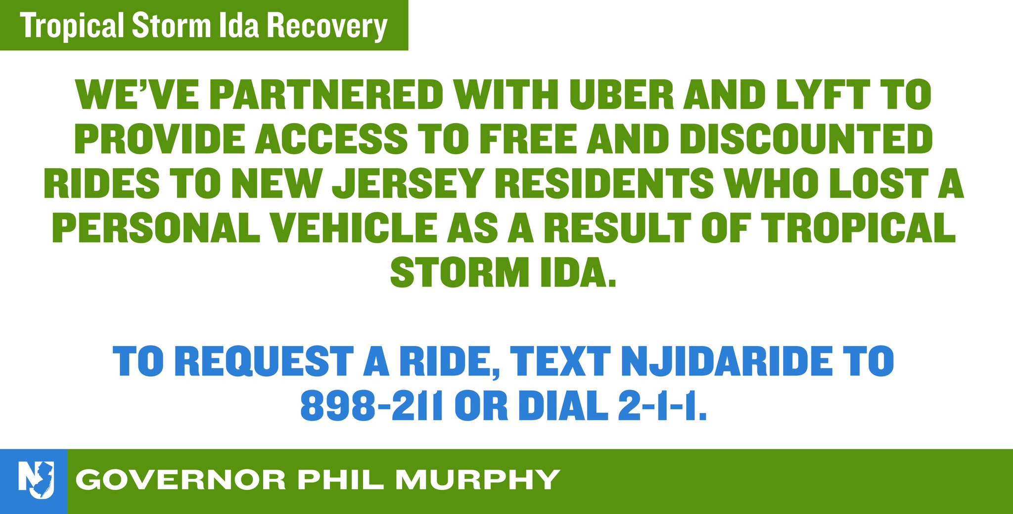 Uzivatel Governor Phil Murphy Na Twitteru New We Ve Partnered With Uber And Lyft To Provide Free And Discounted Rides To New Jerseyans Who Lost A Personal Vehicle As A Result Of Ida