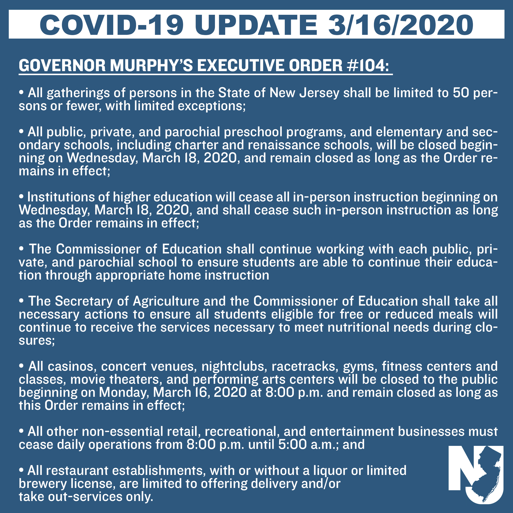 Governor Phil Murphy On Twitter This Is Not Time To Panic But It Is Also Not Time For Business As Usual Every Aggressive Social Distancing Measure We Implemented Today Will Help Stop